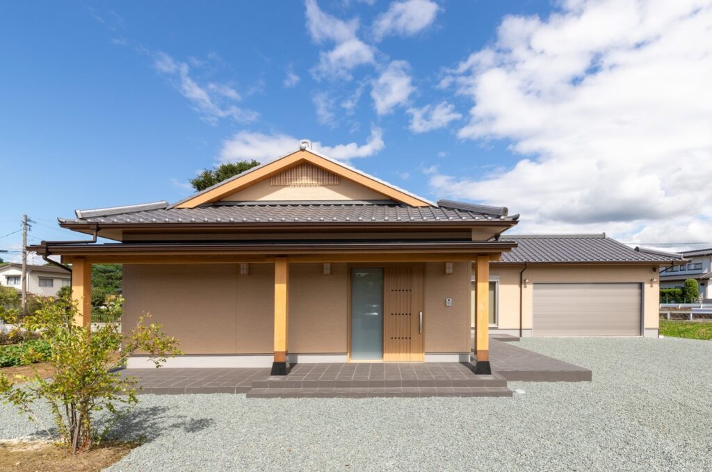 長屋門の柱と三州瓦安田色